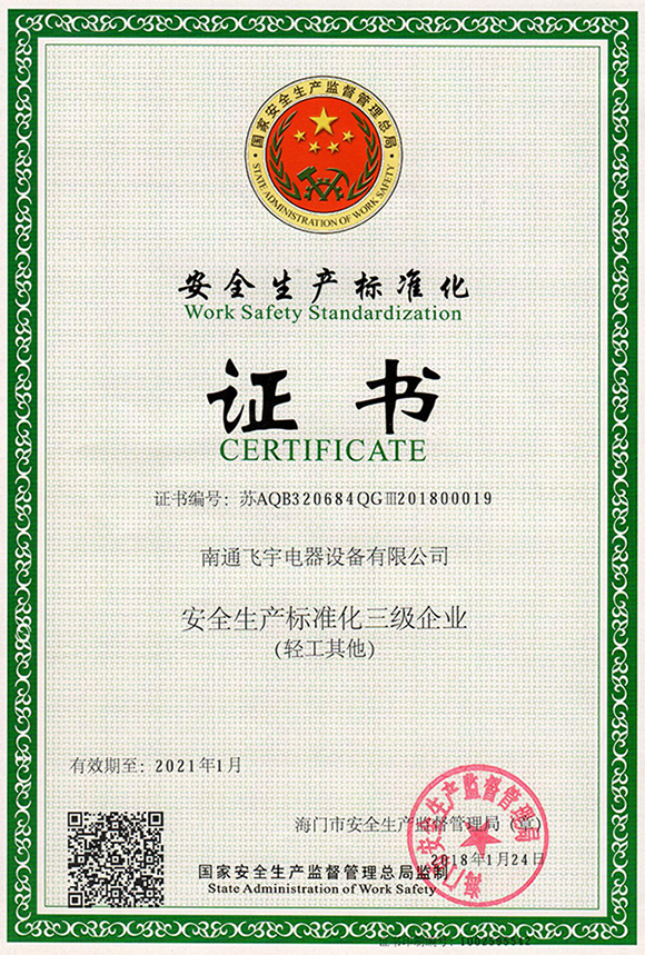 安全生產(chǎn)標(biāo)準(zhǔn)化三級企業(yè)2018-10-09 15:46:17